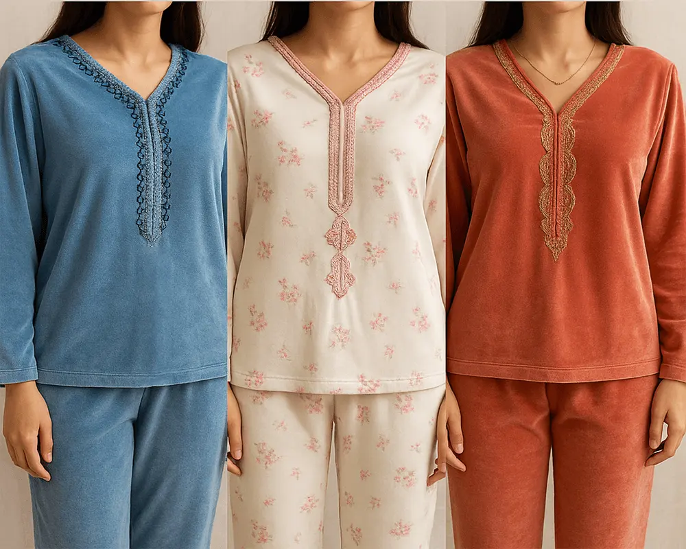 + Free Shippingاستمتعي بالراحة والأناقة مع بيجامات مغربية مصمّمة بعناية لتناسب ذوقكِ الرفيع. مصنوعة من أقمشة فاخرة مثل القطن التركي أو قماش الفيسكوز الناعم، توفر هذه البيجامات ملمساً لطيفاً على البشرة وتهوية ممتازة، ما يجعلها مثالية لفصل الصيف والشتاء على حد سواء.